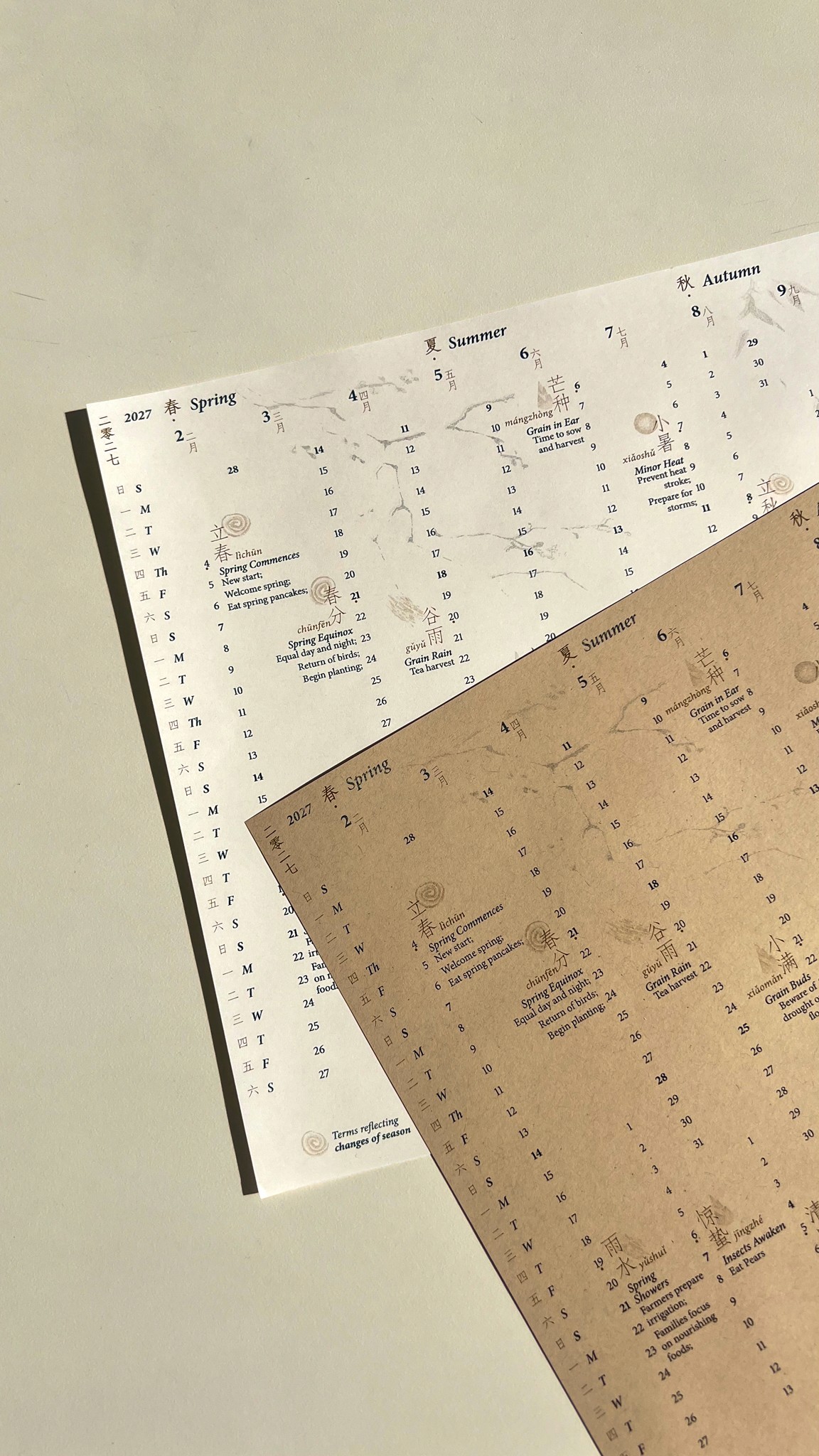 A calendar tracking the seasons using a traditional Chinese Calendar system.